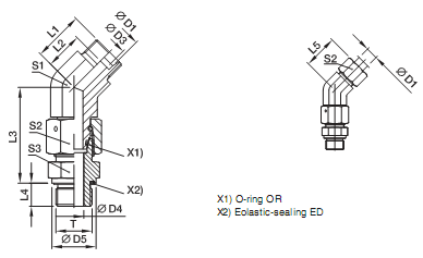 EV-R-ED Assembled adjustable swivel 45° elbow