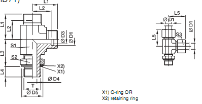 EO 24 cone end /Adjustable BSPP thread (R)C O-ring + retaining ring (ISO 1179