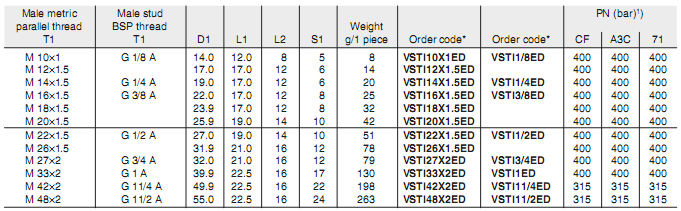 Male metric thread (R)C ED-seal (ISO 9974)
